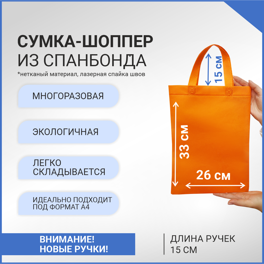 Сумка-шоппер из спанбонда с пришивными ручками 15 см, оранжевая, 26 х 33 см