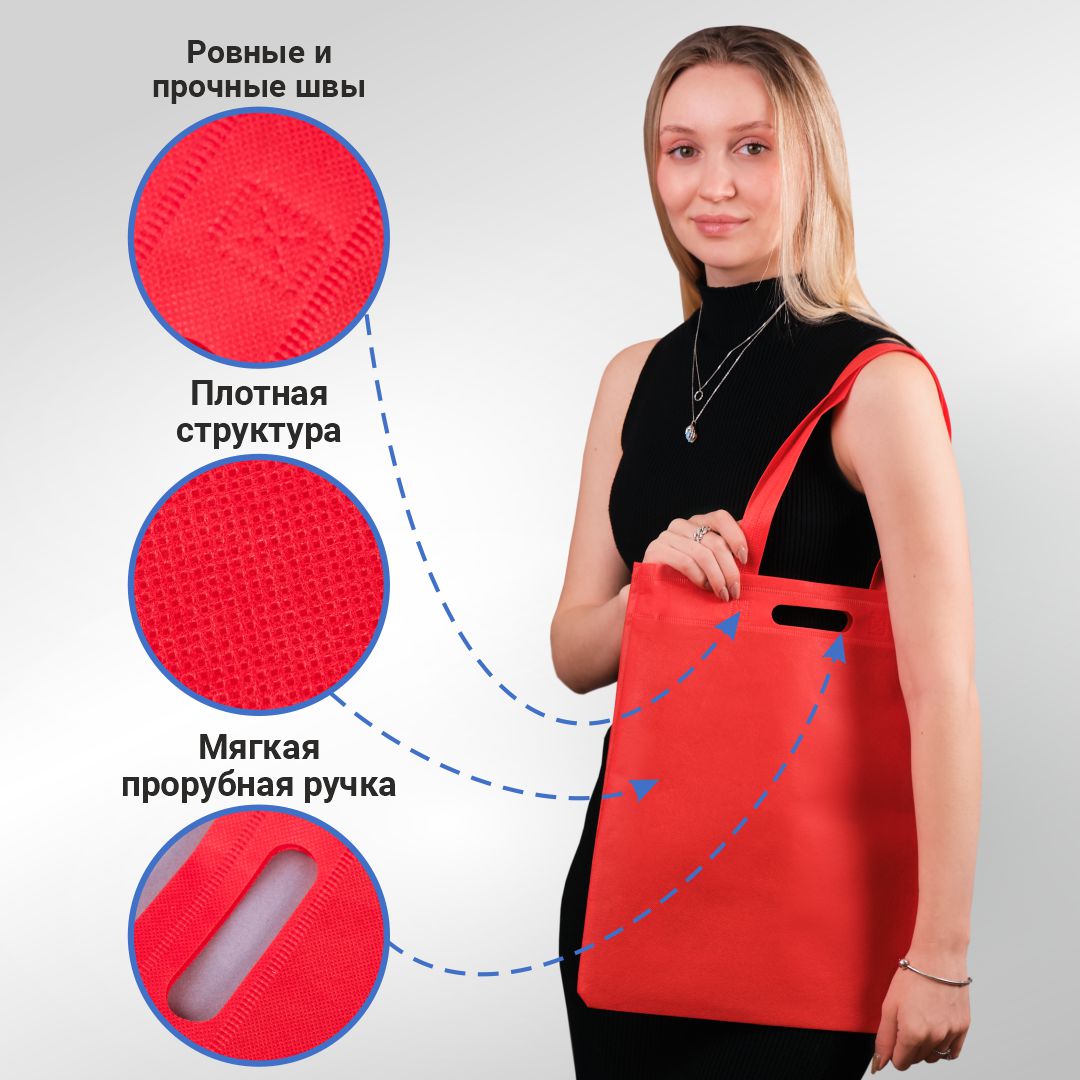 Сумка-шоппер из спанбонда с пришивными ручками 24 см, красная, 35 х 40 см