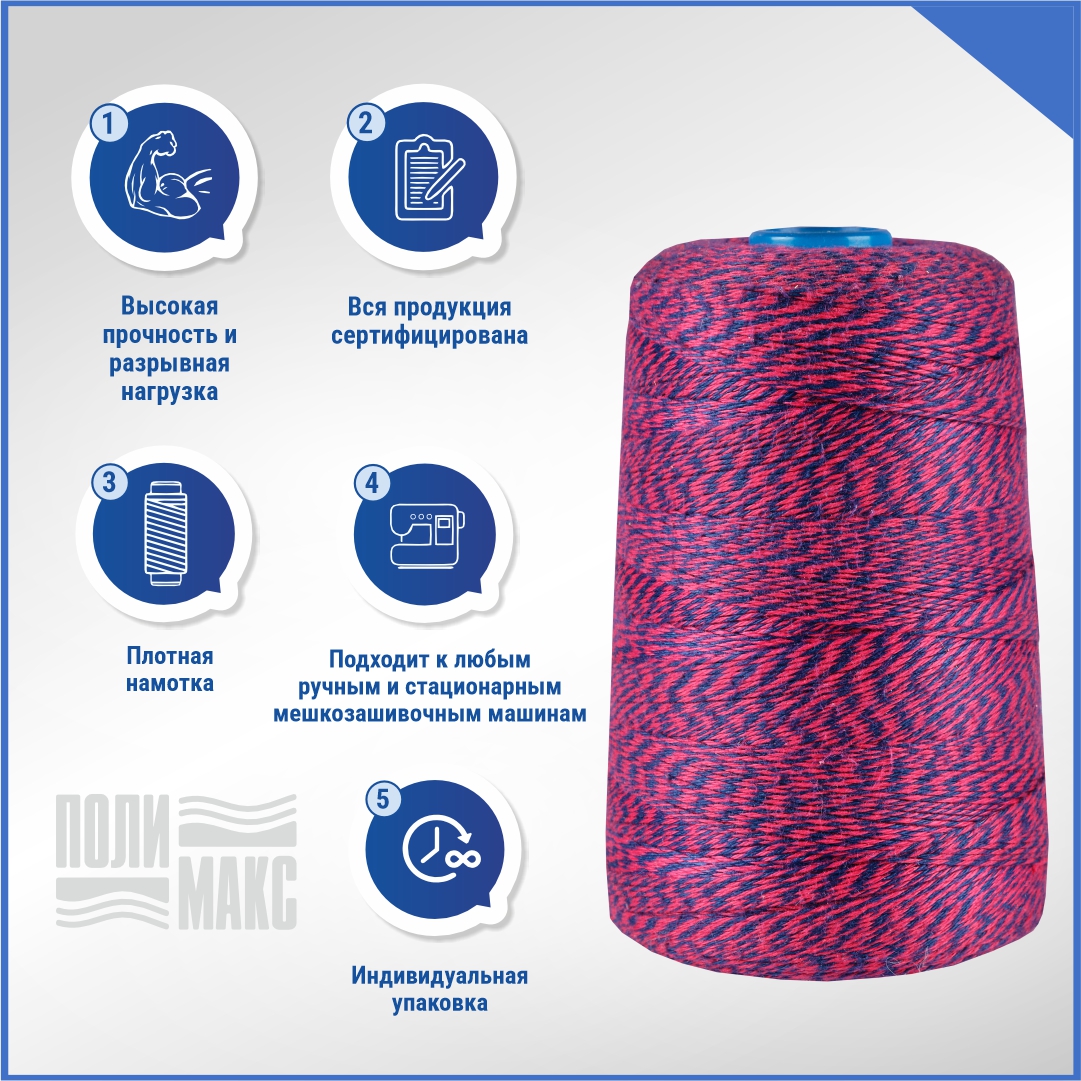 В компании «Полимакс» представлены сине-красные мешкозашивочные нити из 100% полиэстера. Ими фиксируют горловины мешков для защиты содержимого от влаги, мусора, просыпания во время транспортировки.