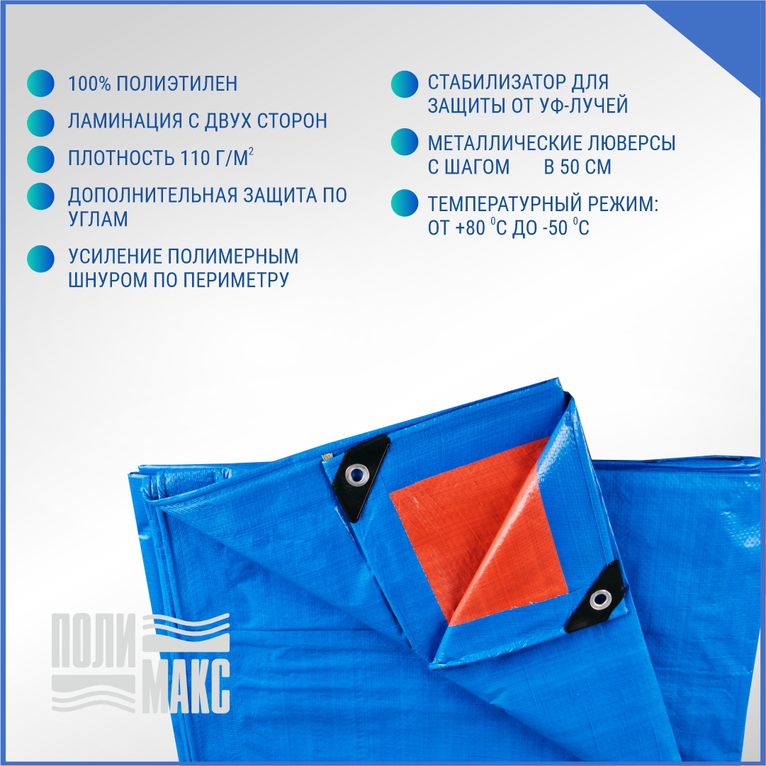 —Полог/тент полиэтиленовый 180 г/м2, 4 х 6 м, синий/оранжевый